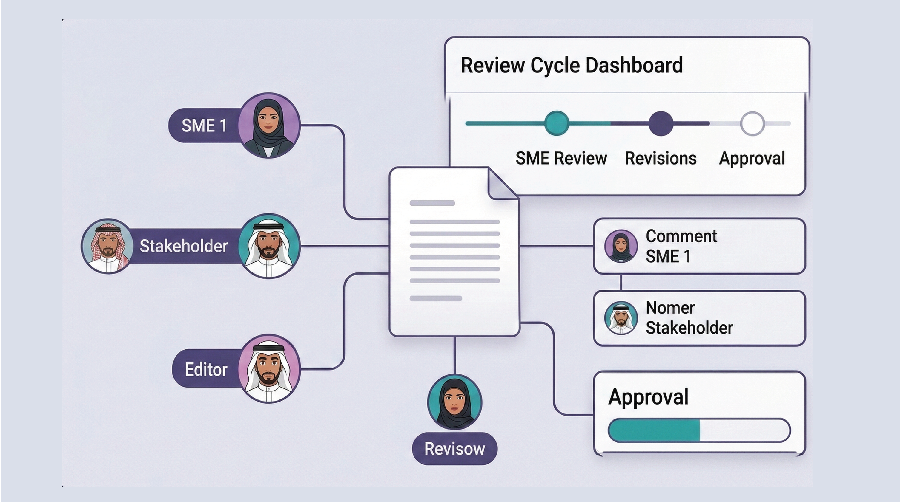 Manage review cycles and approvals so subject matter experts and stakeholders can contribute efficiently.